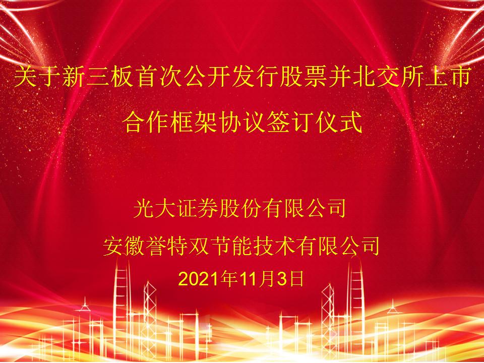 2021年11月3日上午,我公司與光大證券舉行“新三板首次公開發(fā)行股票并北交所上市合作框架協(xié)議”簽約儀式,參加儀式的有光大證券投資銀行部高級(jí)總裁保代單磊、蕪湖營(yíng)業(yè)部總經(jīng)理晉偉、園區(qū)黨委副書記、副總經(jīng)理張勇、汪任保、科創(chuàng)投資公司總經(jīng)理張益、招才引智辦主任柴龍偉、招商部部長(zhǎng)周麗萍、公司董事長(zhǎng)車延花、總經(jīng)理袁克等相關(guān)領(lǐng)導(dǎo)。
