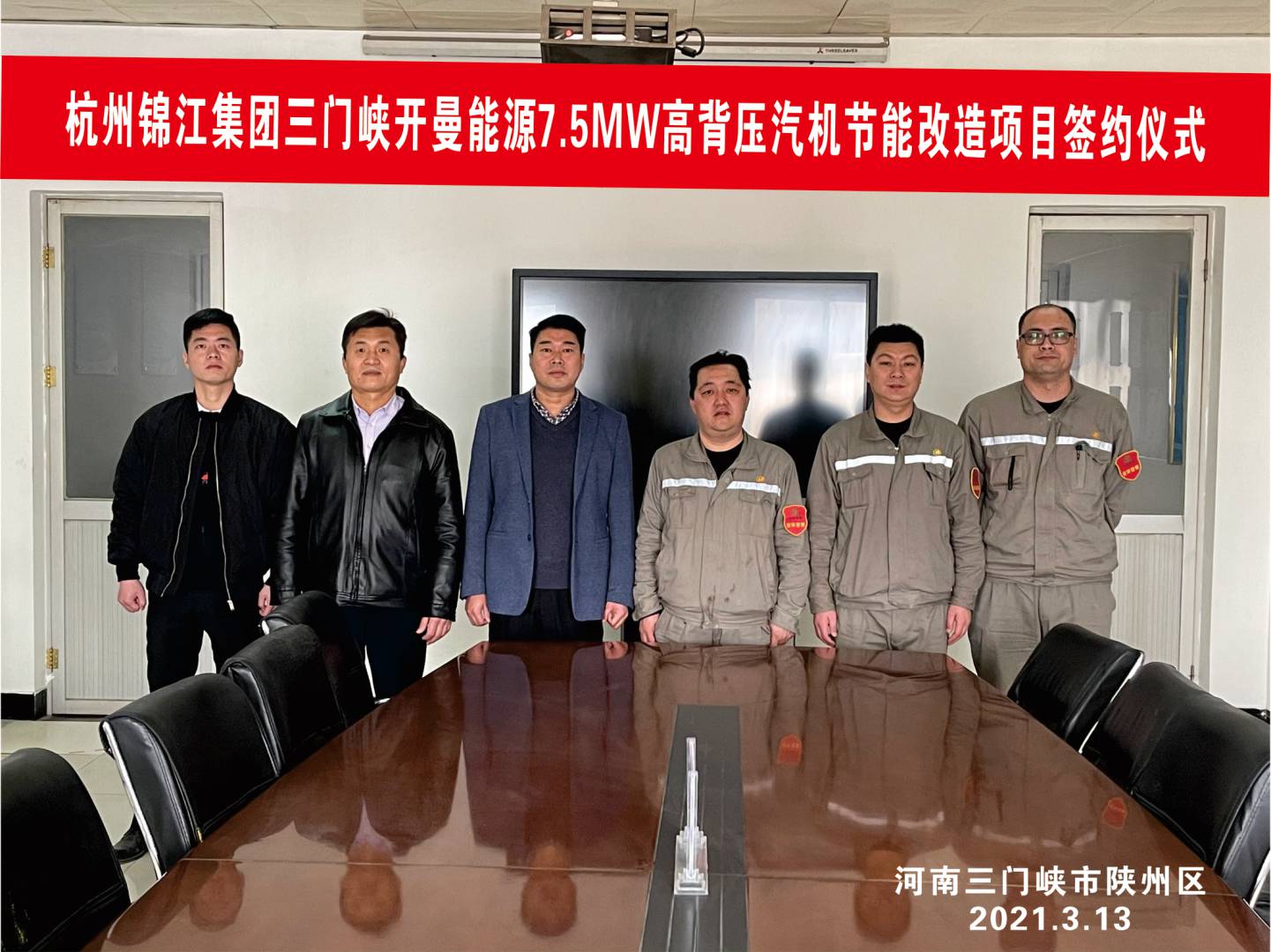 熱烈祝賀公司簽訂中國五百強杭州錦江集團三門峽開曼(陜縣)能源綜合利用有限公司7.5MW高背壓式汽輪機組節(jié)能改造EPC項目