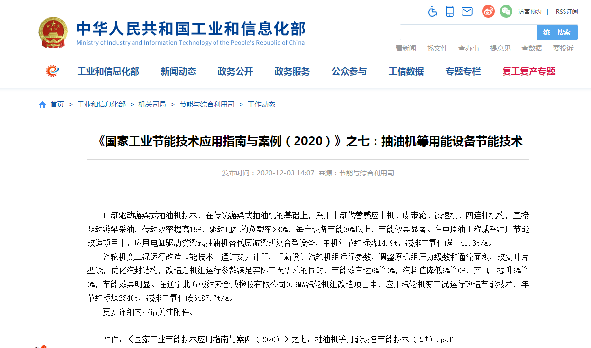 2020年12月3日,國家工業(yè)和信息化部發(fā)布2020年《國家工業(yè)節(jié)能技術應用指南與案例(2020)》,其中我公司核心節(jié)能技術“汽輪機變工況運行改造節(jié)能技術”成功入選。