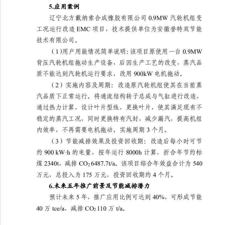 這是繼公司核心技術“工業(yè)蒸汽輪機通流結(jié)構(gòu)技改提效技術”,2019年獲得國家工業(yè)和信息化部《國家工業(yè)節(jié)能技術應用指南與案例(2019)》之后,又一次獲得國家級榮譽,同時標志著我公司當前已有兩項核心工業(yè)節(jié)能技術,正式獲得國家級層面的推廣與市場應用支持。