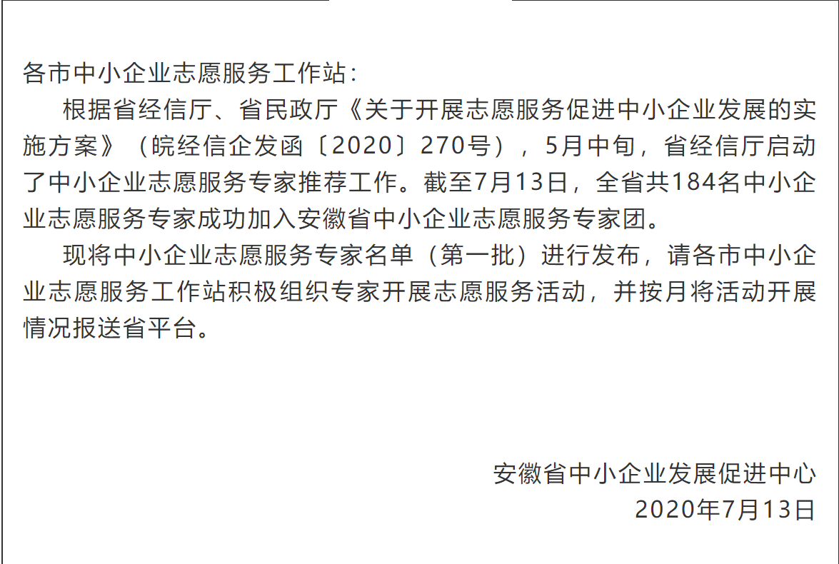 熱烈祝賀公司總經(jīng)理袁克同志成功加入安徽省中小企業(yè)志愿服務(wù)專(zhuān)家團(tuán)