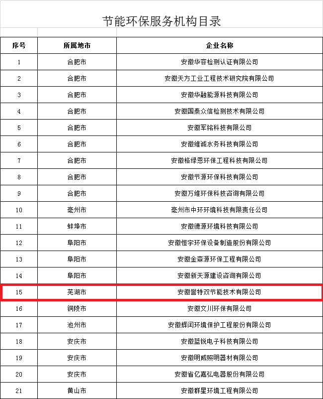 此次我公司雙入選安徽省2019年度全省工業(yè)領域節(jié)能環(huán)保產(chǎn)業(yè)“五個一百”節(jié)能環(huán)保服務機構目錄與節(jié)能環(huán)保先進技術目錄,標志著我公司工業(yè)節(jié)能技術進一步獲得省級認可和支持。即是榮譽,更是鞭策,公司全員決心以高昂的斗志,團結(jié)一致、努力拼搏、再創(chuàng)新高、回饋各方!