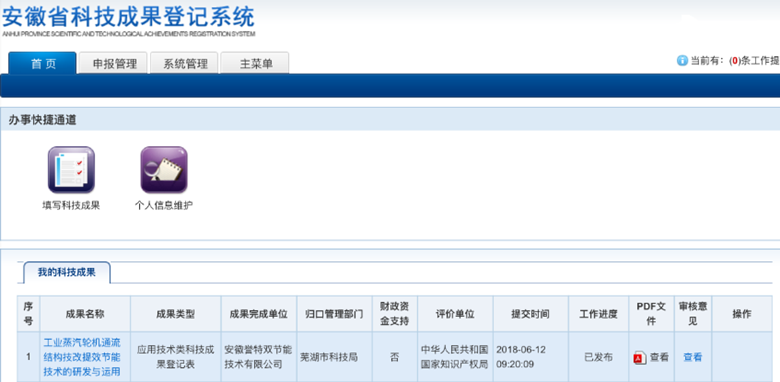 近日,我公司安徽譽特雙節(jié)能技術有限公司專利技術——工業(yè)蒸汽輪機通流結構技改提效節(jié)能技術的研發(fā)與應用,經(jīng)公司組織申報,市科技局審核、專家評委會審、安徽省科技廳復核批準,成果類別:應用技術類科技成果,現(xiàn)予以發(fā)布。