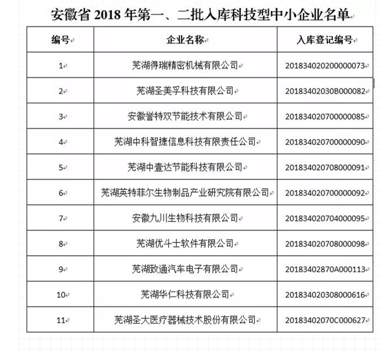 根據(jù)《科技型中小企業(yè)評價辦法》(國科發(fā)政〔2017〕115號)和《科技型中小企業(yè)評價辦法工作指引(試行)》(國科火字〔2017〕144號)要求,我省2018年第一批和第二批擬入庫科技型中小企業(yè)已在“全國科技型中小企業(yè)信息服務(wù)平臺”公示通過,創(chuàng)業(yè)中心共有11家企業(yè)入庫,具體名單如下(排名不分先后):