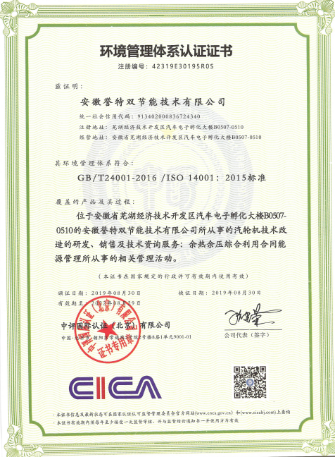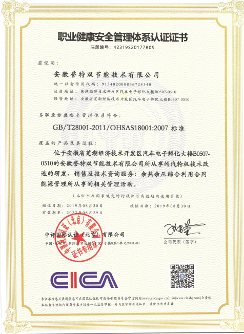 8月31日,公司質(zhì)量、環(huán)境、職業(yè)健康安全管理體系順利通過中評國際認(rèn)證(北京)有限公司的現(xiàn)場審核,再次認(rèn)證了質(zhì)量管理體系,以及新認(rèn)證了環(huán)境、職業(yè)健康安全管理體系,并榮獲三體系認(rèn)證證書。