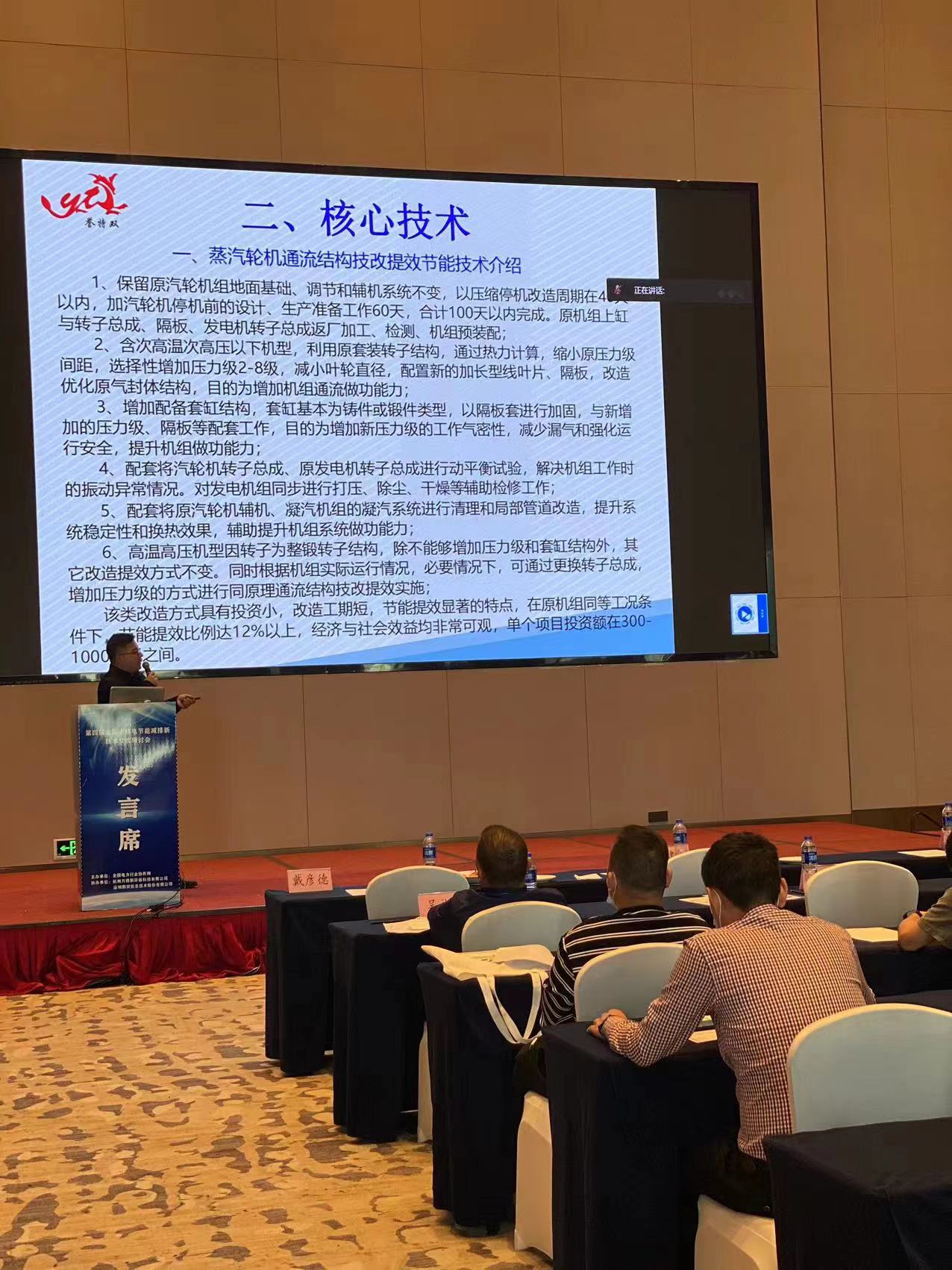 現(xiàn)場來自全國各地的專家學者、協(xié)會領導、參會企業(yè)等共同召開此次交流會。我公司作為特約嘉賓受邀參加本次交流研討會,并由節(jié)能事業(yè)部長湯偉做《工業(yè)蒸汽輪機通流結構技改提效及余熱余壓資源綜合利用節(jié)能技術的研發(fā)與應用》專題報告。