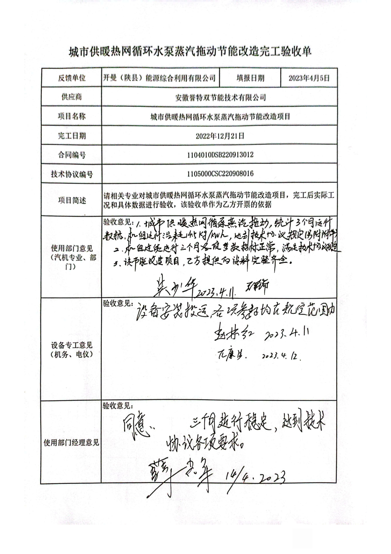 我公司以總包方式承接的——中國五百強錦江集團三門峽開曼能源3.15MW城市供暖熱網(wǎng)循環(huán)水泵蒸汽背壓拖動節(jié)能改造項目,于2022年12月20日一次性開機沖轉(zhuǎn)成功,高效汽輪機組替代電動機拖動循環(huán)水泵運轉(zhuǎn),經(jīng)過三個月的不間斷持續(xù)運行,機組各性能指標均達到設(shè)計參數(shù),運行正常穩(wěn)定,創(chuàng)造節(jié)能效益,現(xiàn)已通過工程驗收,標志著我公司在蒸汽拖動節(jié)能技改領(lǐng)域又建立一項標桿業(yè)績,歡迎廣大潛在用能單位蒞臨考察指導工作,節(jié)能環(huán)保,合作共贏!