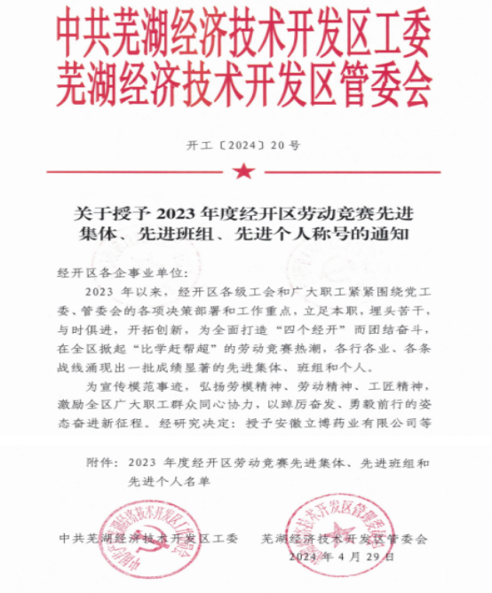 喜訊---熱烈祝賀公司總經(jīng)理榮獲2023年度蕪湖市經(jīng)開區(qū)勞動競賽“先進(jìn)個人”榮譽稱號