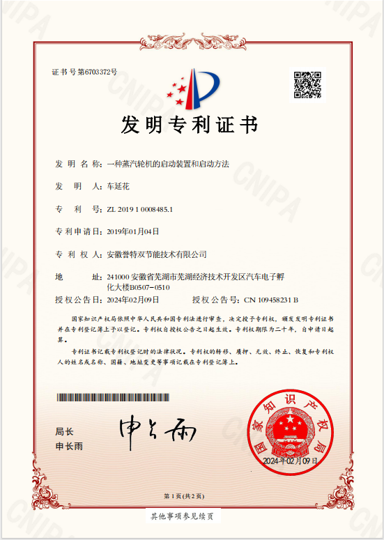 近期,我公司又一項(xiàng)發(fā)明專利獲得國家知識產(chǎn)權(quán)局授權(quán),此項(xiàng)專利名稱為“一種蒸汽輪機(jī)的啟動裝置和啟動方法”,專利號:ZL 2019 1 0008 485.1 。
