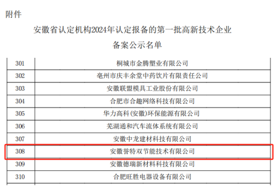 近期,全國高新技術(shù)企業(yè)認(rèn)定管理工作領(lǐng)導(dǎo)小組辦公室公布了安徽省2024年認(rèn)定報(bào)備的第一批高新技術(shù)企業(yè),我公司名列其中,在此表示祝賀!同時(shí)這也是公司連續(xù)第三次被認(rèn)定為國家高新技術(shù)企業(yè)。