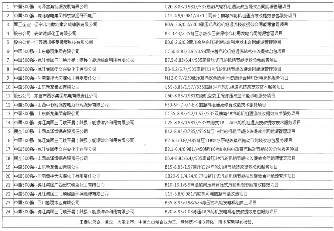 公司創(chuàng)造性的將核心技術與合同能源管理商務模式進行有機整合,并成功在安徽、山東、河南、山西、江蘇等地建設多個標桿業(yè)績,其中,在遼寧北方戴納索合成橡膠、菏澤富海集團、山東魯麗集團、山東新龍集團、德邦化工集團、山西晉控集團、皖北煤電集團、杭州錦江集團、中國節(jié)能集團、森澤煤鋁集團等大型國有、全球五百強、上市企業(yè)落地實施,具有顯著的示范作用。